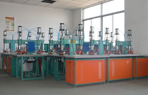 利用高頻電磁波加熱原理適合PVC、TPU、EVA、PETG等或者含有30%PVC混合材料均可以加工熱合。其塑料在高頻機(jī)上、下電極間高頻率相互摩擦生熱瞬間使塑料分子急性化現(xiàn)象,配合相應(yīng)的模具加上一定的壓力就可以達(dá)到塑料熱合效果。