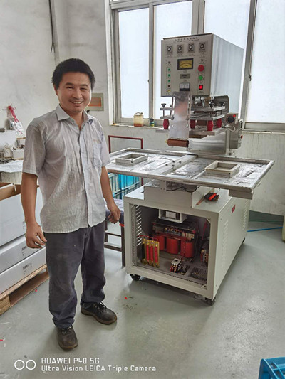 2020年8月18號小編接到無錫恒豐鎖廠顧總的電話,說有一臺高周波吸塑機維修需求,現(xiàn)在不能正常工作,工人無法干活這邊又急著出貨,要求我上門幫忙維修一下;我當時就答應(yīng)下來是考慮地理位置離我們廠比較近,我簡單咨詢了一下設(shè)備目前存在哪些現(xiàn)象,客戶反饋過來就是轉(zhuǎn)盤旋轉(zhuǎn)到位后轉(zhuǎn)盤不下降吸合導(dǎo)致高周波無法啟動。我這邊大致地了解情況后準備簡單工具、圖紙、配件上門維護。
